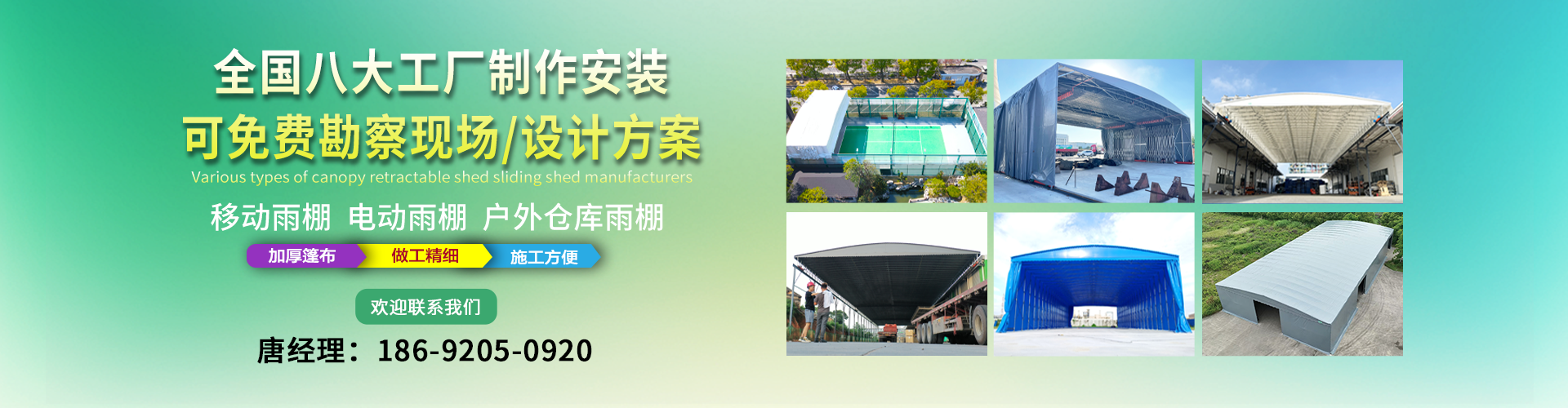 湖南鑫建華鋼結(jié)構(gòu)工程有限公司是一家電動(dòng)雨棚、膜結(jié)構(gòu)車棚研發(fā),生產(chǎn)銷售,施工安裝于一體的專業(yè)鋼結(jié)構(gòu)科技公司,主要產(chǎn)品有伸縮雨棚,電動(dòng)雨棚,膜結(jié)構(gòu)車棚等?! 『系貐^(qū)職員目前有200多人,自建廠房15600平方米,配備先進(jìn)的生產(chǎn)流水線,使每件品質(zhì)產(chǎn)品的堅(jiān)實(shí)基礎(chǔ)?! 」驹诤怅?,蘇州,天津,濟(jì)南,鄭州,江門,佛山,武漢,重慶均設(shè)有服務(wù)工廠,擁有專業(yè)的技術(shù)團(tuán)隊(duì),配備先進(jìn)的設(shè)備和流水線生產(chǎn),產(chǎn)能高,貨源充足,發(fā)貨速度快,服務(wù)區(qū)域廣?! ∫苿?dòng)伸縮棚適用于通道臨時(shí)倉儲(chǔ)、戶外運(yùn)動(dòng)遮陽、污水池遮蓋、能源交通、熱力化工、礦山、船舶制造及市政建設(shè)、物流、碼頭等領(lǐng)域的構(gòu)件制作加工,成品半成品存放、倉庫、野外儀器設(shè)備操作用房等。尤其是對(duì)工廠發(fā)貨、倉儲(chǔ)臨時(shí)遮雨防嗮,梅雨期較長、建設(shè)周期較短的工程施工等特別適用。還可根據(jù)用戶需求量身定制、適合企業(yè)所需不同款式的產(chǎn)品?! ∥夜緢?jiān)持“誠信社會(huì)為本,客戶滿意為榮”的經(jīng)營理念,做到質(zhì)量把控,嚴(yán)格管理,精益求精,恪守承諾。使鑫建華逐步走向成熟,其系統(tǒng)化、專業(yè)化日趨完善。以專業(yè)的技術(shù)、科學(xué)的管理,更高的產(chǎn)品質(zhì)量,優(yōu)良的企業(yè)信譽(yù),真誠的客戶服務(wù),靈活多樣的經(jīng)營方式和務(wù)實(shí)創(chuàng)新的企業(yè)精神愿與社會(huì)各界攜手合作,為推動(dòng)智能鋼結(jié)構(gòu)建筑事業(yè)的發(fā)展而不斷努力。...